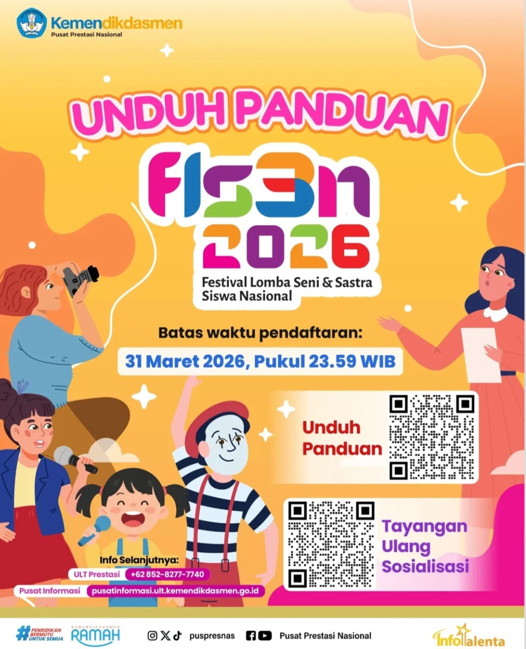Pendaftaran Festival Lomba Seni dan Sastra Siswa Nasional (FLS3N) Jenjang Pendidikan Dasar, Pendidikan Menengah, dan Pendidikan Khusus dibuka hingga 31...