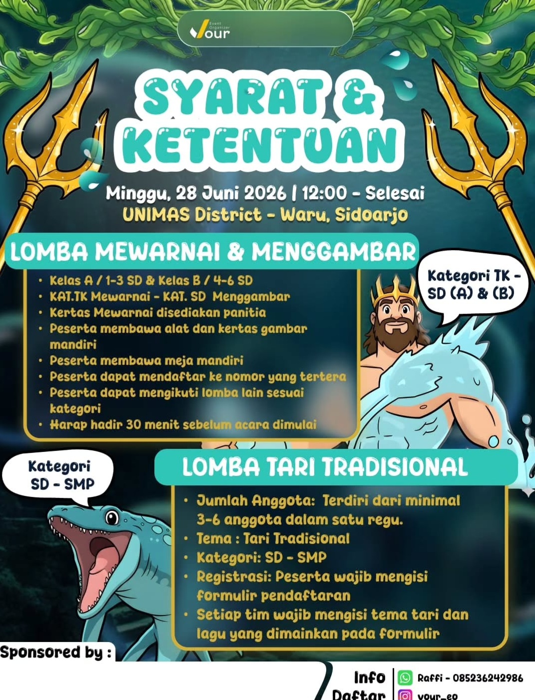 LAUTAN KREATIVITAS AKAN SEGERA DIMULAI! Dalam rangka 1st Anniversary Vour Event Organizer, kami menghadirkan sebuah festival penuh kreativitas, bakat, dan keseruan untuk semua! VOURIANS FESTIVAL 2026 Tempat berkumpulnya talenta muda, kreativitas tanpa batas, dan pengalaman seru bersama keluarga Read more