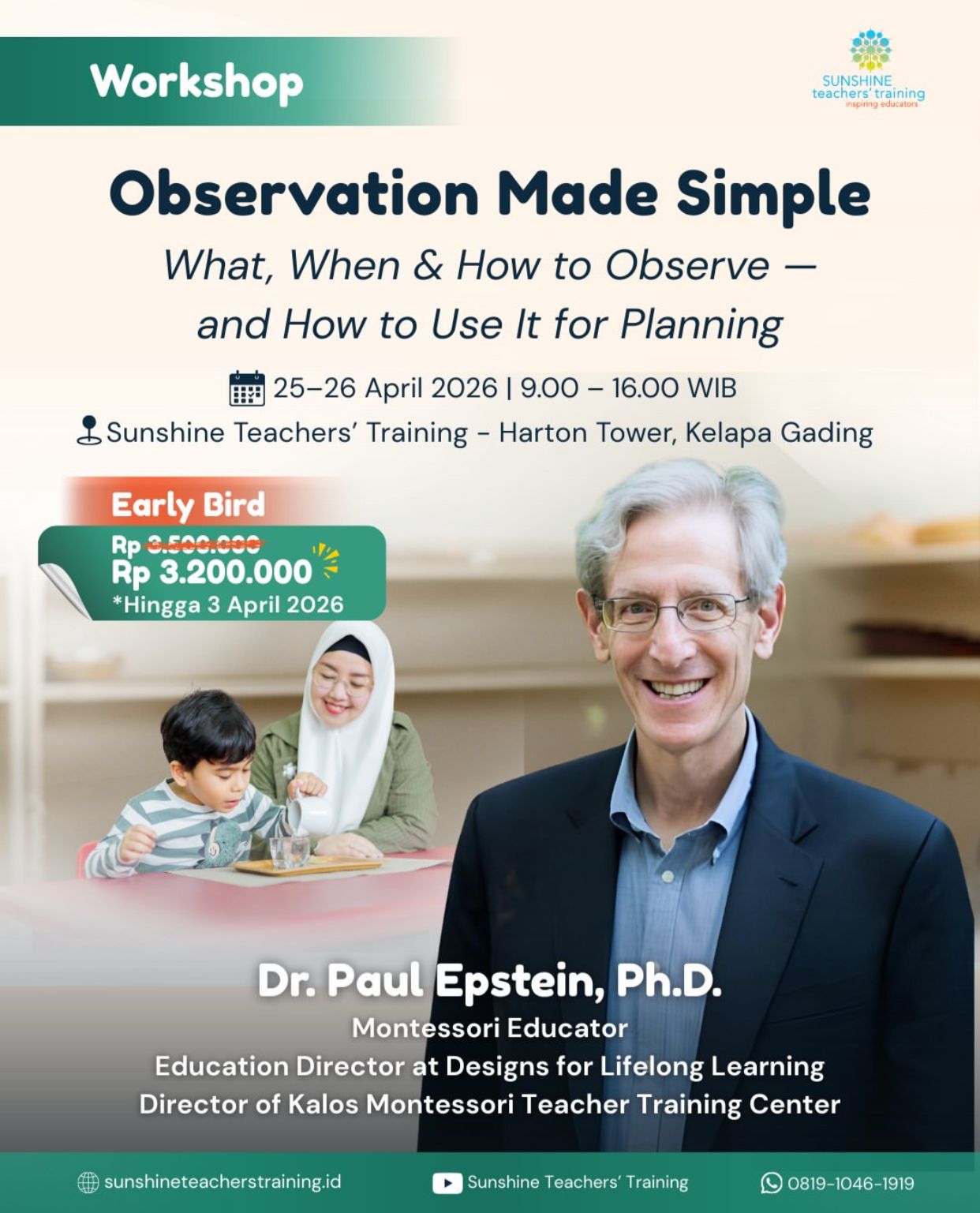 Perencanaan tanpa observasi hanyalah asumsi. Banyak guru di kelas Montessori sudah melakukan observasi setiap hari. Namun, tidak semua guru tahu hal-hal apa saja yang perlu diperhatikan dari observasi tersebut. Dan di situlah kualitas keputusan pembelajaran mulai berbeda. Dalam workshop 2 Read more