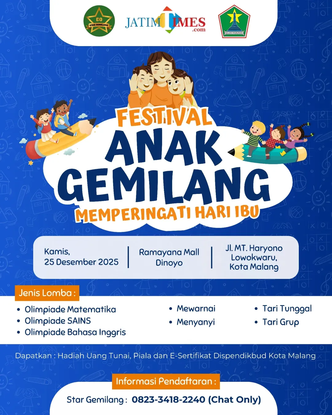 Raih kesempatan mendapatkan Uang Tunai, Piala bergengsi, dan E-Sertifikat resmi dari Dispendikbud Kota Malang!