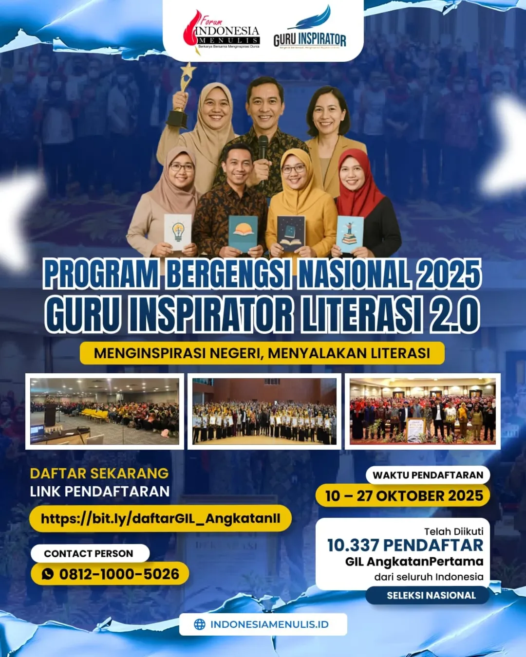 Forum Indonesia Menulis kembali menghadirkan Program Guru Inspirator Literasi (GIL) 2.0 tahun 2025, sebuah ajang bergengsi nasional yang bertujuan untuk menumbuhkan semangat literasi di kalangan pendidik di seluruh Indonesia.