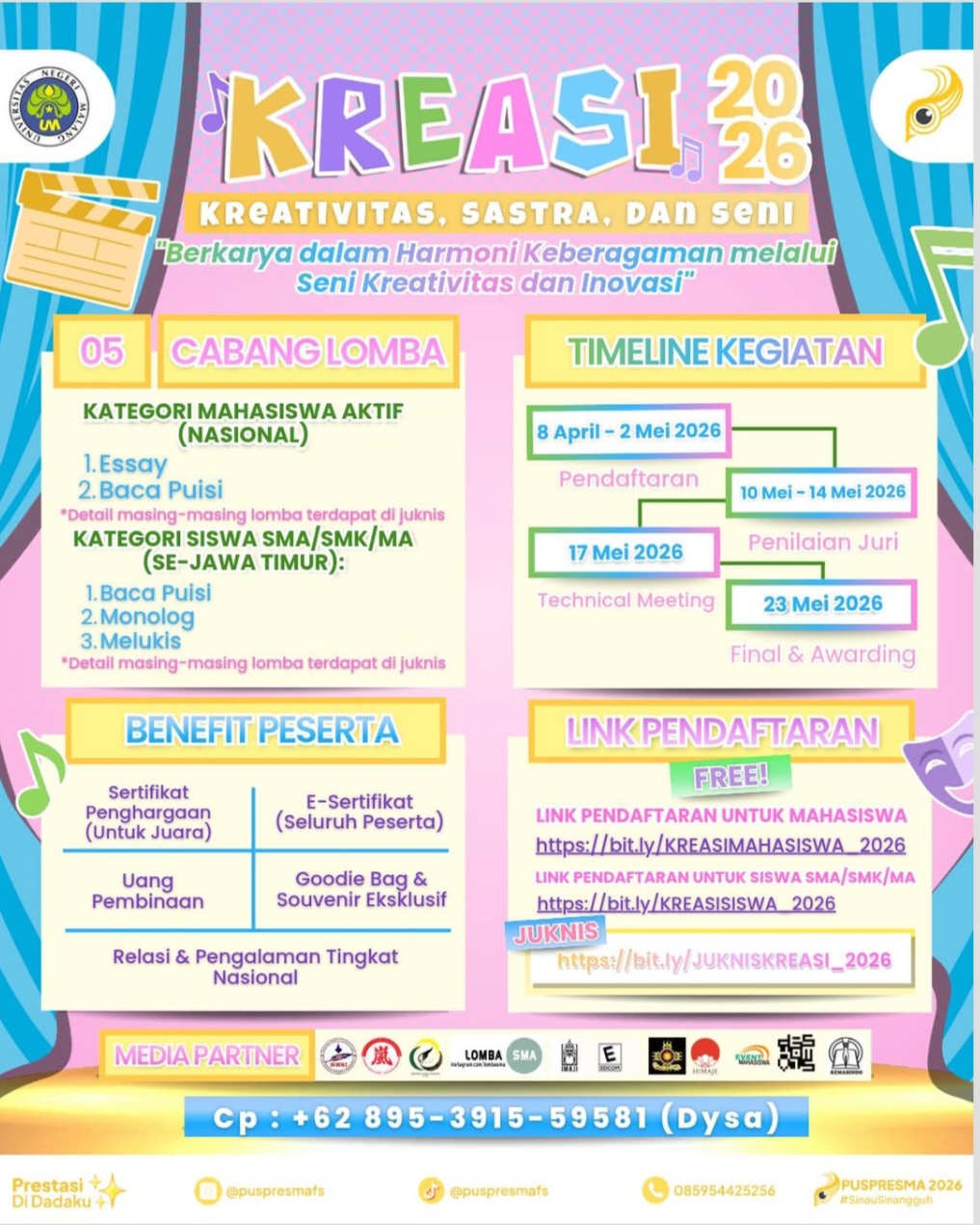 ◻️ https://bit.ly/KREASISISWA_2026 (Siswa SMA/SMK/ MA Sederajat)