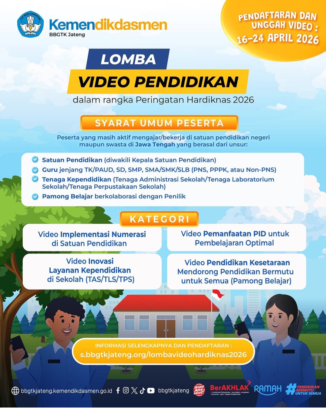 Info dan pendaftaran: s.bbgtkjateng.org/lombavideohardiknas2026