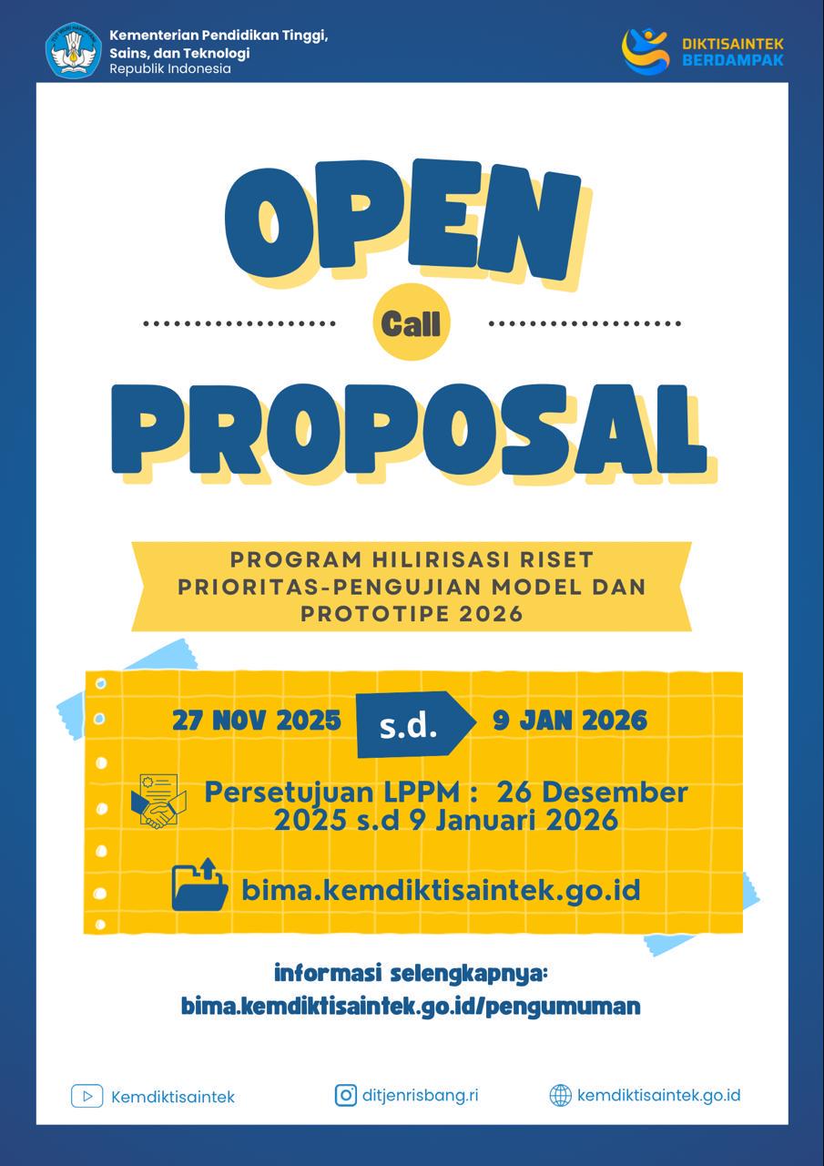 Program Hilirisasi Riset Prioritas-Pengujian Model dan Prototipe 2026 kini telah dibuka.