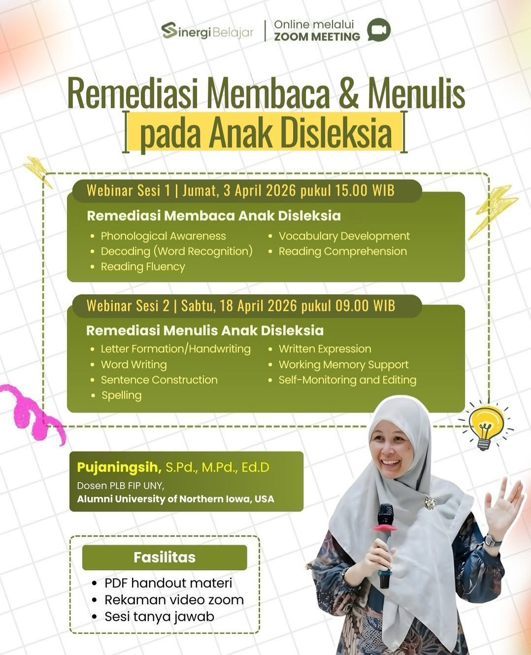Masih bingung bantu anak disleksia belajar membaca & menulis? Yuk pelajari strategi praktis yang bisa langsung diterapkan di rumah & sekolah ✨