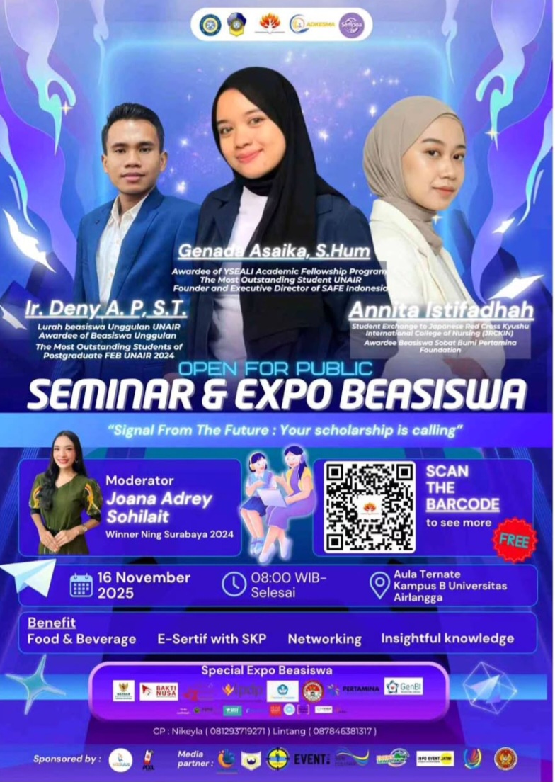 In addition, there will be a SCHOLARSHIP EXPO from Beasiswa Unggulan, LPDP, BAZNAS, Pertamina Foundation Scholarship, GenBI, Glow n Lovely, Bakti Nusa, AMN, and many more..